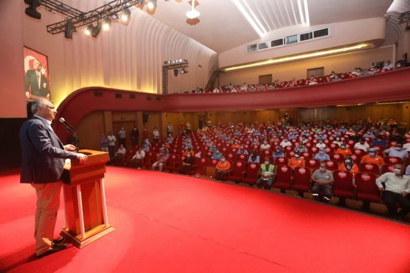 Büyükşehir ve ASKİ’ye bu ay toplam 21 milyon 600 bin lira para aktarıldığını belirten Başkan Zeydan Karalar, “Bizim çalışanımıza ödeyeceğimiz para ASKİ dahil 46 milyon lira. Bürokratlarımız memur maaşlarını ödemek zorunda olduğumuzu söyledi. Ben de ‘Memur maaşlarını ödemek zorundayız da, işçinin maaşını ödemek zorunda değil miyiz?’ dedim. Korona virüsle mücadele eden ve sahada yoğun çalışan işçimize maaş verilmemesine gönlüm asla razı olmaz. Şartları zorladık ve maaşlarımızı ödedik. Biz olanı paylaşmak zorundayız. İnsanlığın ve adaletin gereği budur. Biz çalışanın yanındayız. Bayram harçlığı-ikramiyesi geleneği başlattık. Maddi açıdan zor durumdayız ama devam ettiriyoruz. Ramazan Bayramı için de, korona virüsle mücadelede riske giren, sahada çalışan personelimize 750’şer lira verelim, büroda ve izinde olana da 500’er yüz lira verilim dedik ama, bunu 500’er yüz ve 300’er lira olarak biraz indirdik fakat vazgeçmedik. Paramız buna yetti. Olanı paylaşıyoruz. İnşallah Kurban Bayramı’na kadar gelirlerimiz eski düzeyine ulaşır ve bu miktarın biraz daha üzerine çıkarız. Bu belediye, siyasal parti ayrımı yapmadan, emek veren, çalışan işçisine değer verip sahip çıkacaktır” diye konuştu.