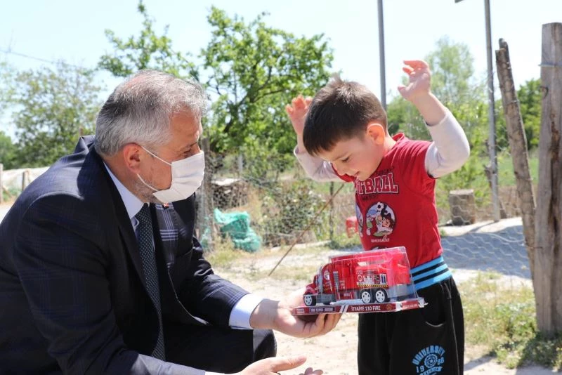 Başkan Kılıç, ziyaretleri sırasında karşılaştığı çocukları oyuncak dağıtarak sevindirdi.