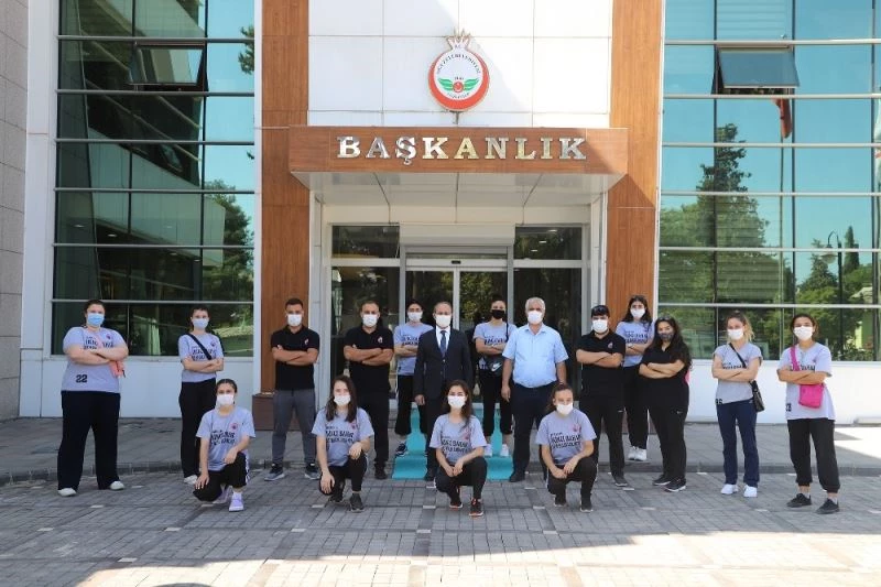 Ziyaretin sonunda Oğuzeli Halk Eğitim Merkezi SK Kadın Hentbol Takımı Oğuzeli Belediye Başkanı Mehmet Sait Kılıç’a isminin yazdığı takım forması hediye etti.