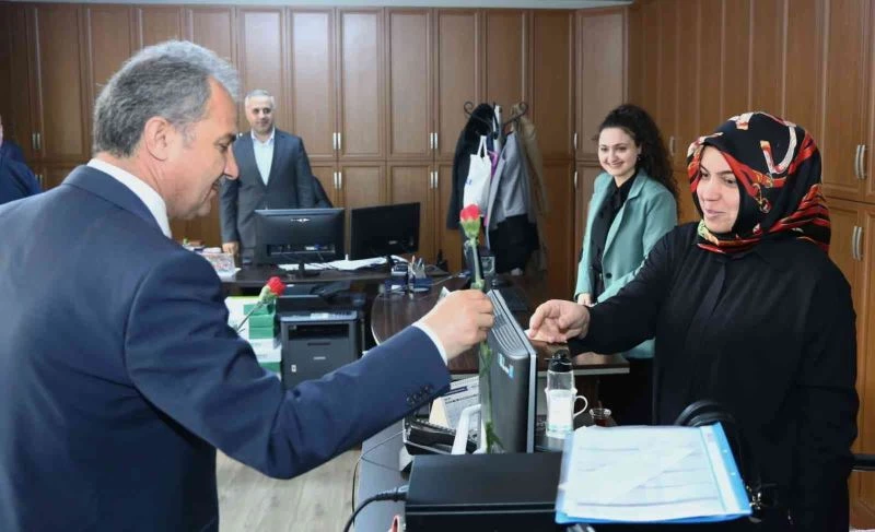 Görevleri başında ziyaret ettiği personellerine karanfil takdim eden Başkan Kılınç, kadınların varlıklarıyla hayatın her alanında önemli bir yere sahip olduğunu ifade etti.