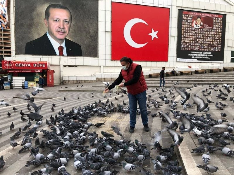 Meydanda güvercinleri besledikten sonra sokak aralarında dolaşan Ufuk Cömez, burada gördüğü kedi ve köpeklere yanında getirdiği mamalardan verdi. “Onlar bizim dilsiz dostlarımız” diyerek sokak hayvanlarına sahip çıkılması gerektiğini söyleyen Cömez, “İnsanoğlu bu dünyayı can dostlarıyla paylaşıyor. Onlar bizim sessiz dostlarımız. Onları unutmamak gerektiğini düşünüyorum. Sokağa çıkma kısıtlamasının uygulandığı hafta sonlarında onlar yemek bulmakta ve beslenmekte zorlanıyorlar. Ben de bu hafta sonu iki günümden birkaç saati onlarla paylaşmak istedim” dedi.