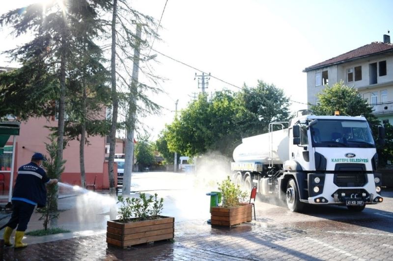 Korona virüs salgını ile 7/24 görev yapan Kartepe Belediyesi ekipleri, normalleşme sürecine girildikten sonra da ilçe genelinde dezenfeksiyon işlemlerine devam ediyor. Bu kapsamda Kartepeliler’in ortak kullanım alanları ekipler tarafından titizlikle dezenfekte ediliyor. Çalışmalarda halkın ortak kullanım alanları camiler, otobüsler, kooperatifler, kamu binaları, sağlık ocakları, eczaneler, taksi durakları, ATM’ler, parklar, kamuya açık alanlar, muhtarlıklar gibi pek çok alan belediye ekipleri tarafından titizlikle dezenfekte ediliyor.
