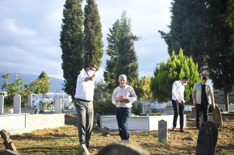 Kartepe Belediye Başkanı Mustafa Kocaman, Uzunbey mezarlığında yapılan çalışmaları yakından takip ediyor.