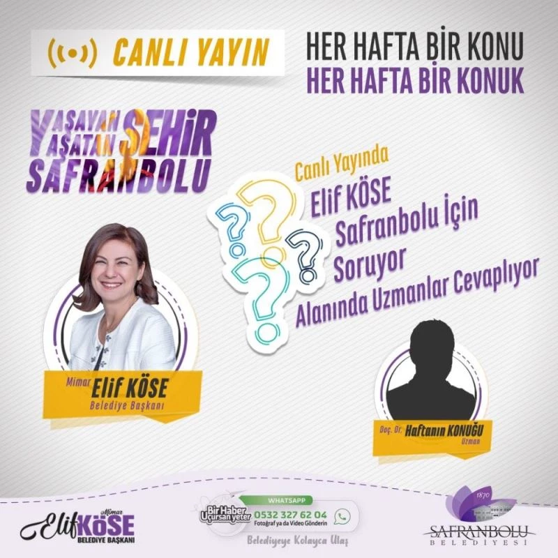 Köse, Safranbolu Belediyesi’nin sosyal medya hesabı üzerinden canlı yayında her hafta farklı konu ve uzman konukların yer aldığı programda araştıran, geliştiren öğrenen bir Safranbolu için sorular soracak.