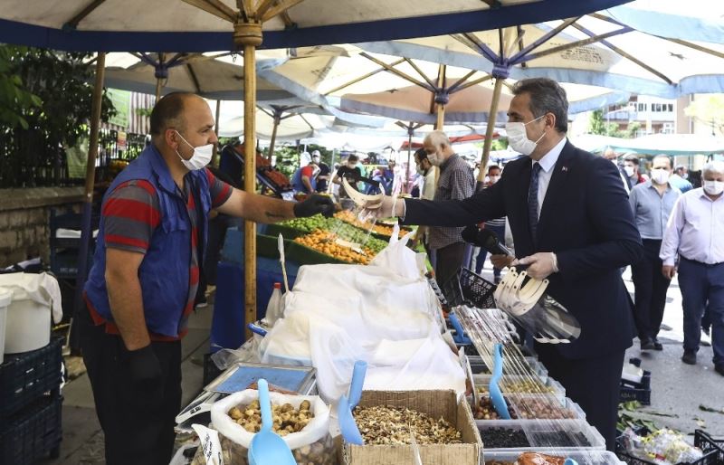 Başkan Köse pazarcı esnafı ile kuaförlere siperlik ve maske dağıttı