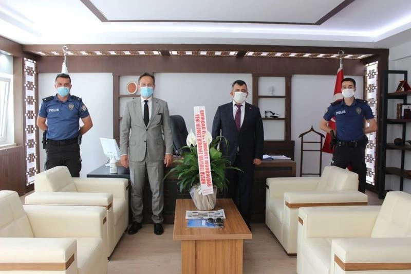Emirdağ’a modern bir belediye hizmet binasını kavuşturan Emirdağ Belediye Başkanı Serkan Koyuncu’ya hayırlı olsun ziyaretleri devam ediyor. Başkan Koyuncu’yu ilk olarak Gömü Belediye Başkanı Hakkı Tekin, İlçe Emniyet Müdürü Erdal Yanık, komiser yardımcıları; Mustafa Toygar Özel ve Recep Çağatay Ceylan ziyaret etti. Daha sonra AK Parti Emirdağ İlçe Başkanı İsmail Dişiçürük ve Yönetim Kurulu üyeleri, Emirdağ Belediye Başkanı Serkan Koyuncu’yu yeni hizmet binasında ziyaret ettiler. Başkan Koyuncu, misafirleriyle bir süre makam odasında görüştükten sonra yeni hizmet binasının birimlerini gezdiler.