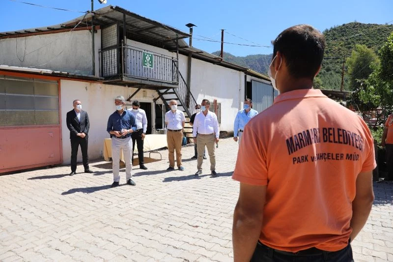 Marmaris Belediye Başkanı Mehmet Oktay, bayram öncesi sahada çalışan personeli ziyaret ederek hem bayramlarını kutladı, hem de yaptıkları çalışmalardan ötürü teşekkür etti.