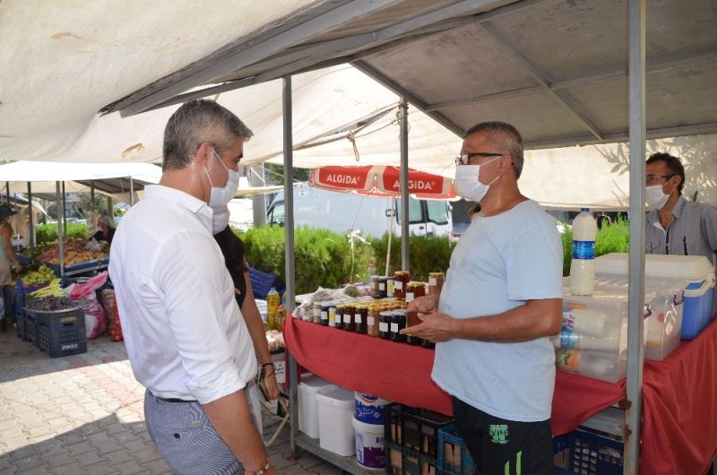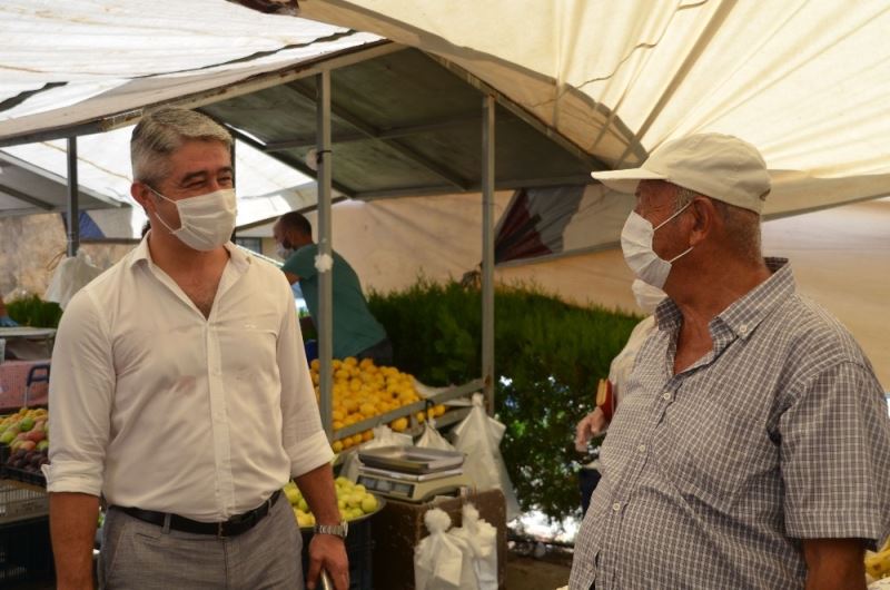 Semt pazarı ve esnafı gezen Marmaris Belediye Başkanı Mehmet Oktay, “Maske, mesafe ve hijyen kurallarına uyduğumuz sürece tehlike de azalacaktır” diyerek vatandaşlara pandemi kurallarını hatırlattı.