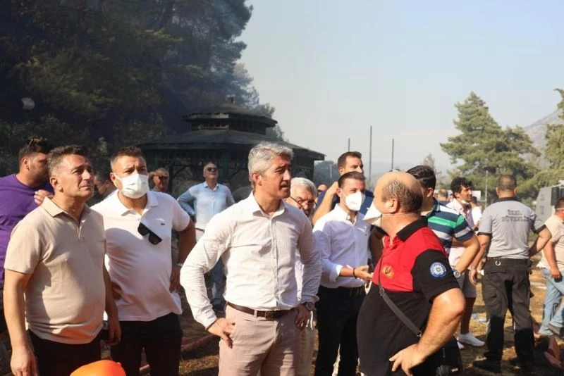 İki gün üst üste yangın felaketi yaşayan Marmaris’te, Belediye Başkanı Mehmet Oktay; başkan yardımcıları, birim amirleri ve söndürme ekiplerine lojistik destek veren ekiplerle birlikte yangın bölgesinde yer aldı.