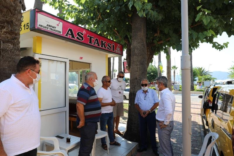 Marmaris Belediye Başkanı Mehmet Oktay ve Marmaris Şoförler Odası Başkanı İbrahim Tarım, korona virüs salgını nedeniyle zor günler geçiren taksi duraklarını ziyaret ederek taksici esnafının taleplerini dinledi. Oktay, maske, sosyal mesafe ve hijyen kurallarını bir kez daha hatırlattı.