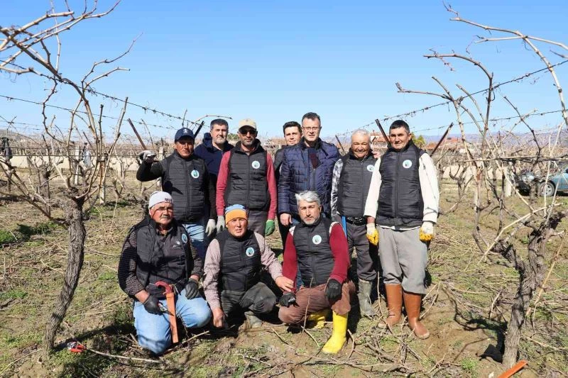 Başkan Öküzcüoğlu üzüm bağlarında budama yapan işçilerle buluştu