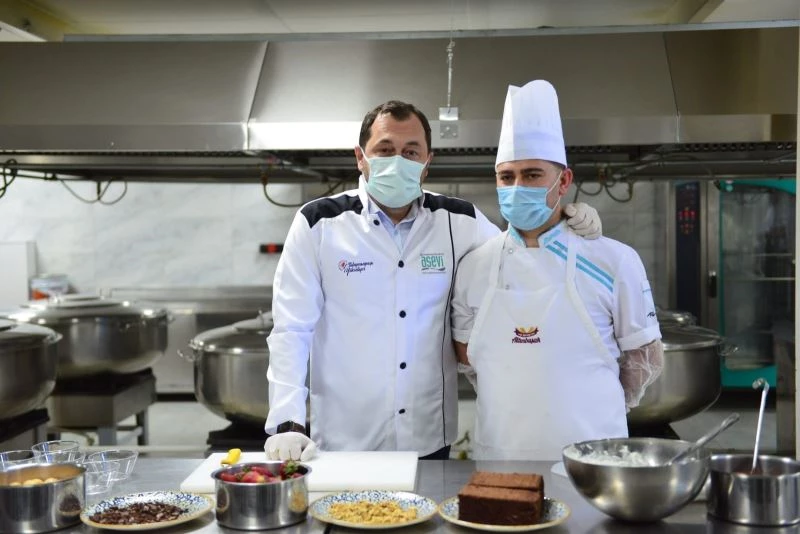 Başkan, önlük giyip Sevgi Evleri’ndeki çocuklar için mutfakta tatlı yaptı