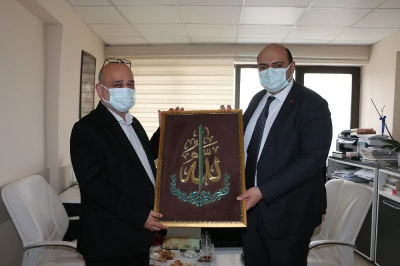 Kutlama ziyaretinin ardından Başkan Orhan, İlçe Sağlık Müdürü Bilici’ye filografi tablo hediye ederken, tüm sağlık çalışanlarına da, Aziziye Belediyesi’nin hijyen setlerinden dağıtıldı.