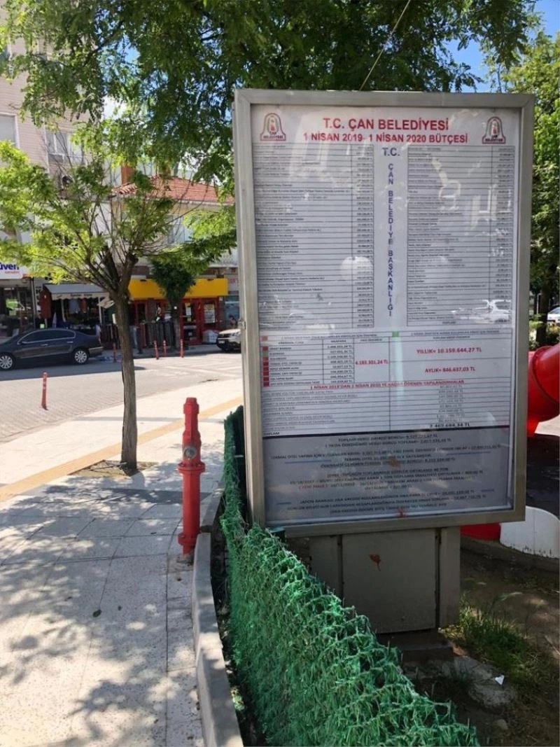Çanakkale’nin Çan Belediye Başkanı Bülent Öz, seçimlerden önce verdiği şeffaflık sözünü, 1 Nisan 2019-1 Nisan 2020 tarihleri arası belediye mali durum bütçesini şehrin muhtelif yerlerindeki billboardlarda, belediyenin sosyal medya hesaplarında ve web sitesinde ilan ederek yerine getirdi.
