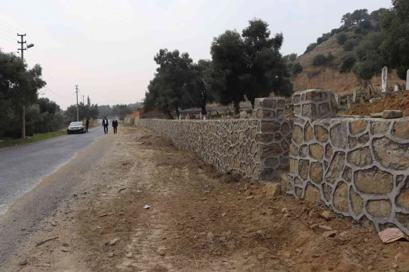 Nazilli Belediyesi Fen İşleri Müdürlüğü ekipleri, Pınarbaşı Mahallesi Malhallı Mezarlığı mevkiinde istinat duvarı yapım çalışmalarını tamamlandı.