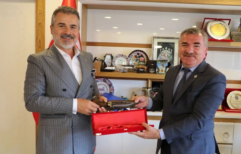 Ziyaretin sonunda Havza Belediye Başkanı Sebahattin Özdemir, Suat Kılıç’a üzerinde ismi yazlı hançer hediye ederken, Kılıç’ta Özdemir’e Besmele yazılı pano hediye etti.