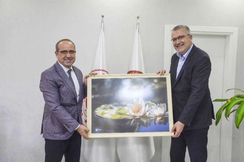 Ziyaret sonunda Özkan, Gülmüş’e Karacabey Longoz Ormanlarında çekilen nilüfer çiçeği tablosu hediye etti.