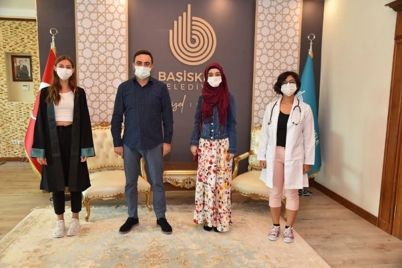 Başiskele Belediye Başkanı Yasin Özlü, YKS’de Türkiye sıralamasında ilk 500’e giren başarılı 3 öğrenciyi makamında ağırlayarak hediyeler takdim etti.