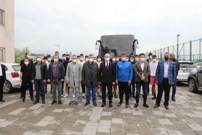 Başkan Özlü, destek ziyaretinde yaptığı konuşmada, “Ligdeki başarı grafiğinizi yakından takip ettim. Perşembe günü önemli bir karşılaşmamız var. Daha sonra 3 maç kalıyor. Sizden şampiyonluk bekliyorum. Her zaman destekçinizim ve yanınızdayım. Aksaray deplasmanından galip gelin ve bana gelin. Elimden geleni yapacağım. İnsanları başarıya ulaştıran tutkularıdır. Bir işi tutkuyla yaparsanız mutlaka başarılı olursunuz. Bu yüzden play-off maçlarında bütün gücünüzü kullanın ve şampiyon olun” dedi.