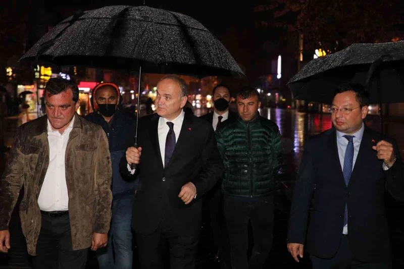 Düzce Belediye Başkanı Dr. Faruk Özlü uygulama çalışmaları devam eden Kent Estetiği Projesini yerinde inceledi. Akşam saatlerinde yağmura aldırış etmeden caddeyi arşınlayan Başkan Özlü projede sona gelindiğinin müjdesini verdi.