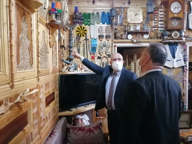 Bayburt Belediye Başkanı Hükmü Pekmezci, evini geleneksel mimari yapıya uygun restore ederek topladığı eski günlük yaşamda kullanılan araç ve gereçleri sergileyen Ömer Keleş’i ziyaret etti.