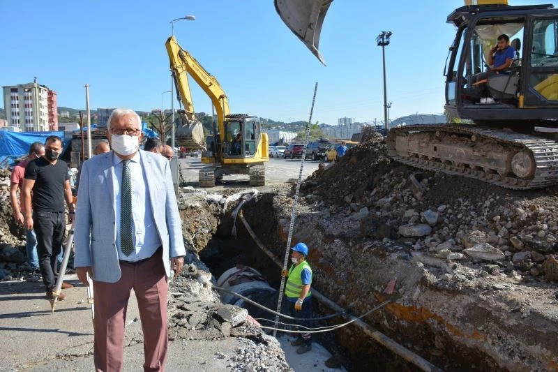 Aşırı yağışlarda sel sularının çevreye zarar vermemesi için Ereğli çapında çalışmalarımıza devam ediyoruz. Özellikle son ve bir önceki yağışta gördük ki Cumartesi pazarında yerel üreticilerin olduğu yerde büyük su taşkını oldu. Burası zor bir saha. Buradan suyu tahliye etmek de bizi zorladı. Yaptığımız hesaplara göre 1200 mm. çapındaki büzlerle birlikte bu bölgeden yağmur suyunu alıp Kabasakal Deresi’ne ulaşacağız. Titiz bir şekilde bu çalışmayı yürütüyoruz. Eğimi arkadaşlar sürekli takip ederek ilerliyorlar. Kabasakal Deresi’ne ulaştırdığımız zaman bu bölgede taşkın sıkıntısı tamamen bitmiş olacak. Belli noktaya gelindi, aynı hızla çalışmalar devam ediyor.”