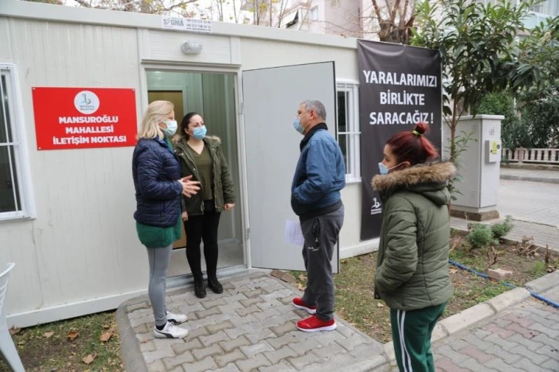 Depremden en çok etkilenen 3 mahallede kurulan Kentsel Dönüşüm İletişim Noktalarıyla ilgili bilgi veren Bayraklı Belediye Başkan Yardımcısı Sibel Elçi ise, “Mansuroğlu, Manavkuyu ve Adalet Mahallelerinde hasar oranları daha yüksekti. Bu bölgede vatandaşlarımızın binalarıyla ilgili, yapılacaklarla ilgili çok fazla sorusu ve talebi vardı. Biz de bundan yola çıkarak, başkanımızın talimatıyla bu 3 mahallemizde geçici konteynerler kurup, teknik arkadaşlarımızı görevlendirerek vatandaşlarımızın sorularını yanıtlıyoruz. Genel olarak bölgedeki imar haklarının neler olacağıyla ilgili bilgi almak istiyorlar. Bu konuda belediyemizce yapılmakta olan çalışmalar hakkında bilgi veriyoruz. Aynı zamanda Sosyal Hizmetler Müdürlüğümüzden de bir personel arkadaşımız, vatandaşlarımızın eşya ve gıda ihtiyaçlarıyla ilgili taleplerini alarak, en kısa sürede kendilerine iletilmesini sağlıyor" diye konuştu.
