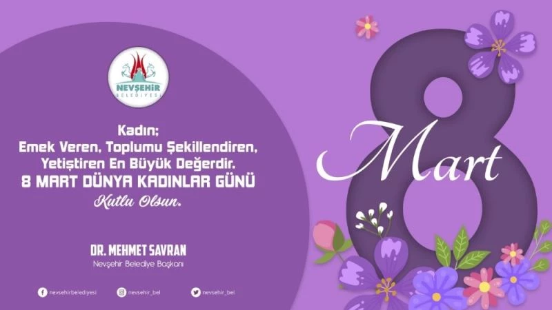 Nevşehir Belediye Başkanı Mehmet Savran, 8 Mart Dünya Kadınlar Günü dolayısıyla bir mesaj yayınladı.