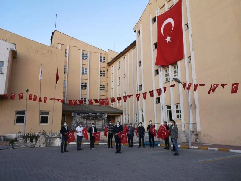 Başkan Sayan belediye ekipleriyle birlikte İstiklal Marşı okudu