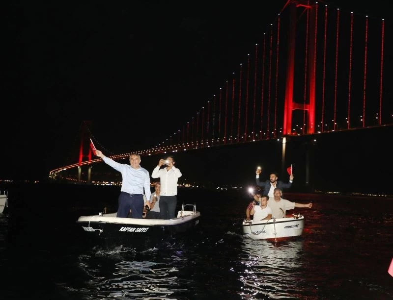 Dilovası’nda 30 Ağustos Zafer Bayramı etkinlikleri kapsamında denizde Osman Gazi Köprüsü manzarası eşliğinde kayıklarla fener alayı turu düzenlendi.