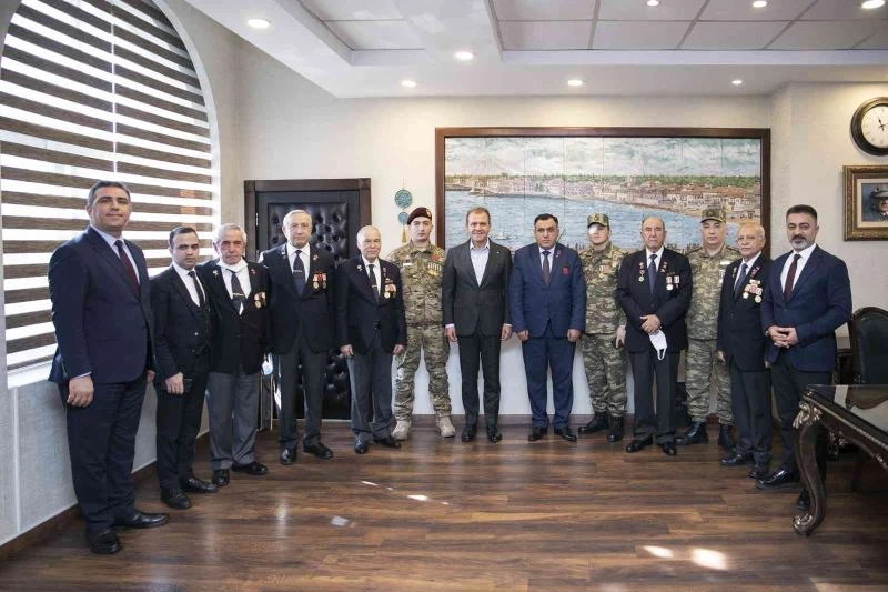 3 Ocak Mersin’in düşman işgalinden kurtuluşunun 100. yılı dolayısıyla Azerbaycan’dan gelip Mersin’de ağırlanan gaziler, Büyükşehir Belediye Başkanı Seçer’i ziyaret etti. Ziyarette gazilerin yanı sıra; Azerbaycan Askeri Dernekler Başkanı Emin Hasanlı, Türkiye Muharip Gaziler Derneği Genel Başkanı Beyazıt Yumuk, Türkiye Muharip Gaziler Derneği Mersin Şube Başkanı Kemal Cındız, Büyükşehir Belediyesi Sosyal Hizmetler Dairesi Başkanı Serdal Gökayaz ile Şehit Aileleri ve Gazi Hizmetleri Şube Müdürü Cengiz Sevinç de yer aldı.