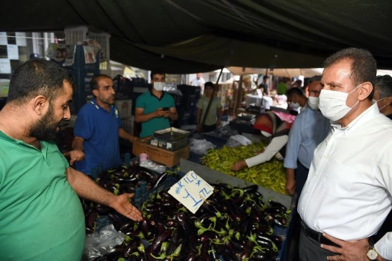 Mersin Büyükşehir Belediye Başkanı Vahap Seçer, merkez Akdeniz ilçesi Güneş Mahallesinde kurulan cuma pazarını ziyaret ederek pazarcı esnafıyla buluştu. Pazar alışverişine gelen vatandaşlarla da sohbet eden Seçer, su faturalarının artmasıyla ilgili şikayetlere de yanıt verdi.