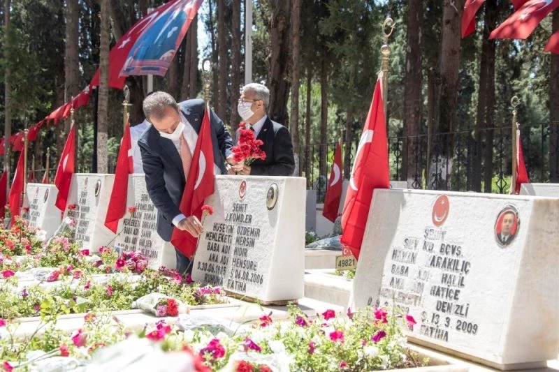 Mersin Büyükşehir Belediye Başkanı Vahap Seçer, pandemi süreci nedeniyle uygulanan sokağa çıkma kısıtlamasının gölgesinde kutlanan Ramazan Bayramı’nın ilk gününde şehit ailelerini yalnız bırakmadı. Şehitlikte düzenlenen dua ve bayramlaşmaya katılan Başkan Seçer, ailelere sabır diledi, şehitlerin mezarlarına karanfil bıraktı.