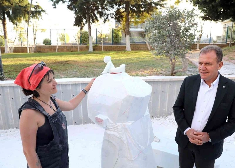 Mersin Büyükşehir Belediye Başkanı Vahap Seçer, kente kazandıracakları ‘Umut Çocuk’ heykeli için çalışmalarına devam eden Heykeltıraş Ayla Turan’ı ziyaret etti.