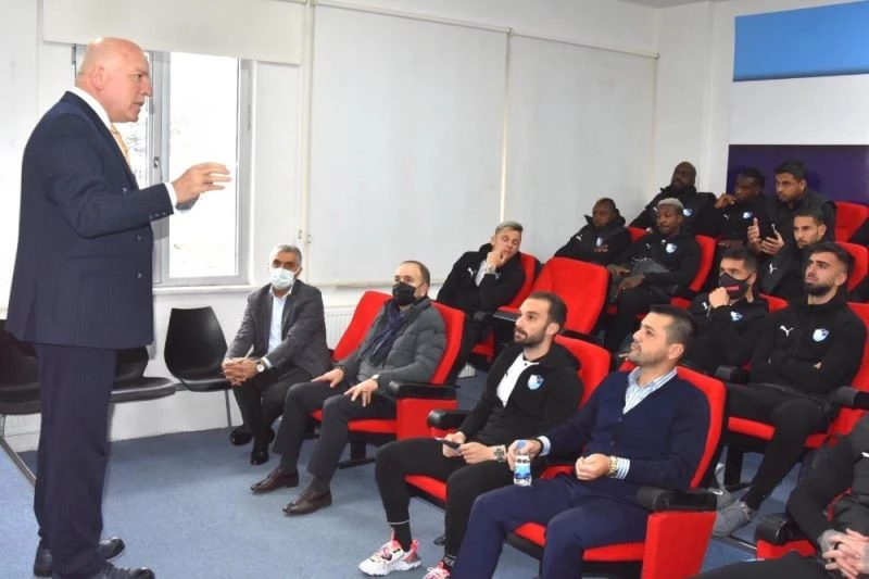 Erzurum Büyükşehir Belediye Başkanı ve BB Erzurumspor Onursal Başkanı Mehmet Sekmen, BB Erzurumspor kafilesinin Konya’ya hareketi öncesi Erzurumspor tesislerini ziyaret etti. Başkan Sekmen yeni teknik direktör Hüseyin Çimşir’i tebrik etti ve Konyaspor maçı öncesinde futbolcularla bir araya geldi.