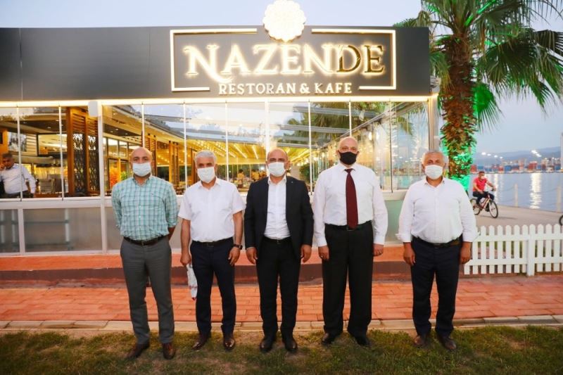 Körfez Belediye Başkanı Şener Söğüt, siyasi partilerin ilçe başkanlarını ve meclis üyelerini Yarımca sahilinde hayata geçirilen Nazende Restoran ve Kafe’de ağırladı. Programa Başkan Şener Söğüt ve Başkan Yardımcıları Faruk Denli, İbrahim Çırpan ve Levent Yılmaz, siyasi parti ilçe başkanları ve meclis üyeleri katıldı. Programda konuşan Körfez Belediye Başkanı Şener Söğüt, “Seçim döneminde de göreve geldiğimizde de bölge halkımızın burada bir sosyal tesis için bizlerden talebi vardı. Burası için hemen çalışma başlattık. Çünkü gerçekten böyle bir tesise bölgenin ihtiyacı vardı. Meclis üyelerimizle birlikte buranın hayata geçirilmesi için tüm adımları attık. Bugün de burada Nazende Restoran ve Kafe’de sizleri ağırlıyoruz” dedi.