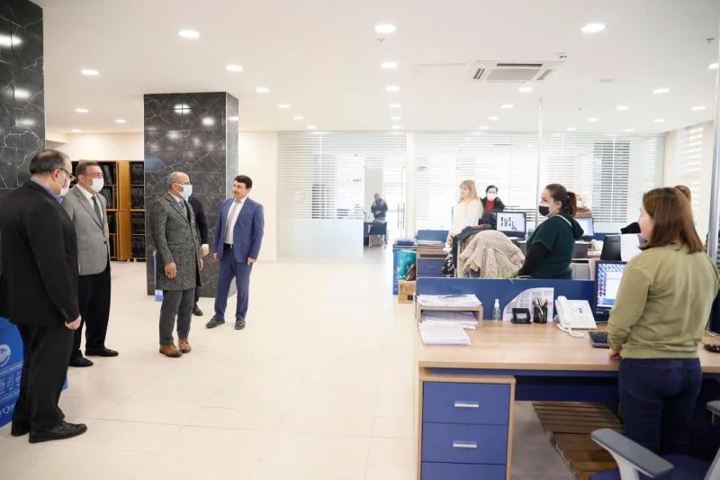 Körfez Belediye Başkanı Şener Söğüt, Sarnıç Han İş ve Yaşam Merkezi’ne tahsisi yapılan Tapu Müdürlüğü’nü ziyaret etti.
