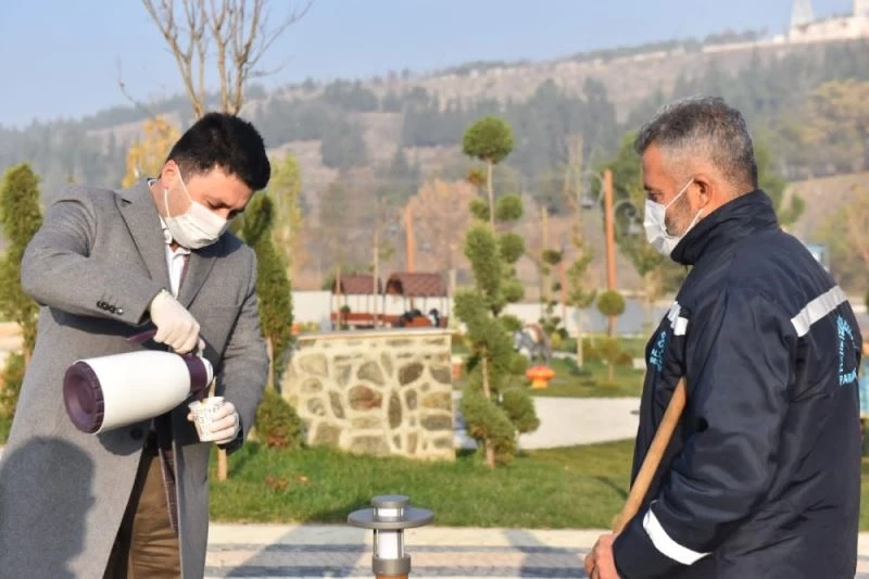 Başkan sokakta görev yapan polis ve belediye çalışanlarını unutmadı