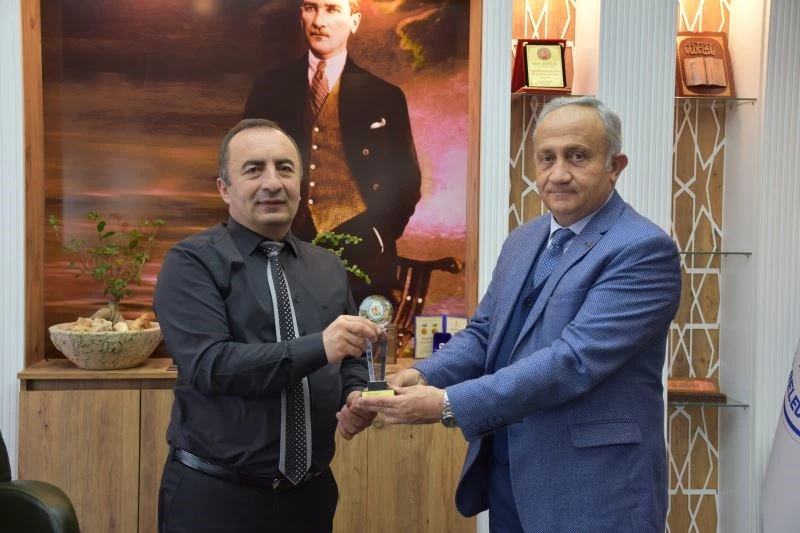 Başkan Ali Sülük’e Mahmetçik Vakfı’nın çalışmaları hakkında bilgi veren Kabakçı, daha sonra teşekkür plaketi takdim etti.