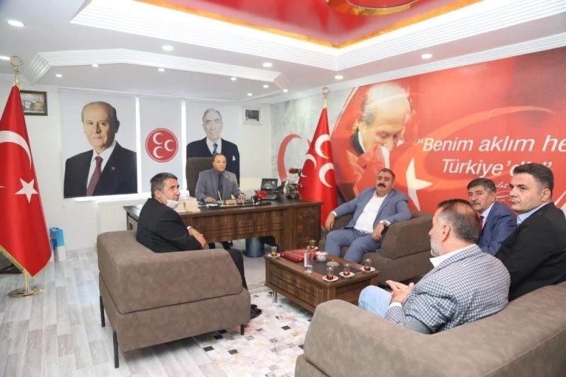 Palandöken Belediyesi Başkanı Muhammet Sunar ve Narman Belediyesi Başkanı Burhanettin Eser’i kabul eden MHP Erzurum İl Başkanı Naim Karataş, yeni il binasının da ilk ziyaretçilerini ağırlamış oldu.