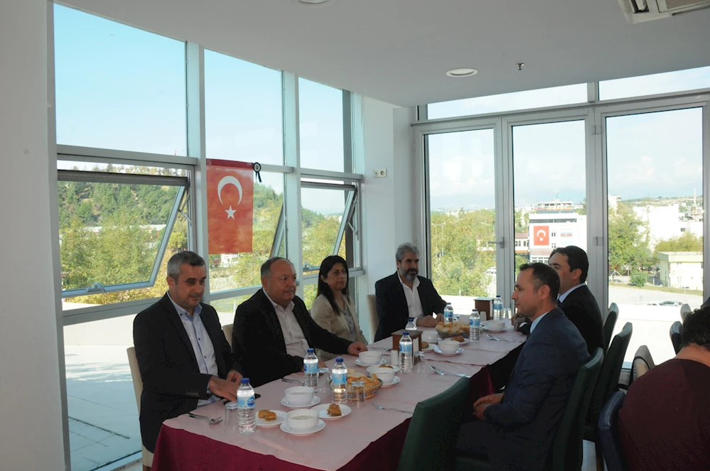 Kadirli Belediye Başkanı Ömer Tarhan, Kadirli Sosyal ve Beşeri Bilimler Fakültesi Dekan V. Prof.Dr. Mahmut Hamil NAZİK, Dekan Yardimcisi, Bilgi ve Belge Yönetimi Bölüm Başkanı Dr. Öğr. Üyesi Hüseyin Hilmi ALADAĞ, Dr. Öğr. Üyesi Burak KOCAOĞLU, Fakülte Sekreteri V. C.Sadık KEMANECİ ve öğrencileri, Kadirli Uygulamalı Bilimler Yüksekokulu Müdürü Dr.Öğr. Üyesi Nermin BAHŞİ, Gastronomi ve Mutfak Sanatları, Gıda Teknolojisi ve Organik Tarım İşletmeciliği Bölümleri öğrencileri ile Kadirli Belediyesi yemekhanesinde bir araya geldi.