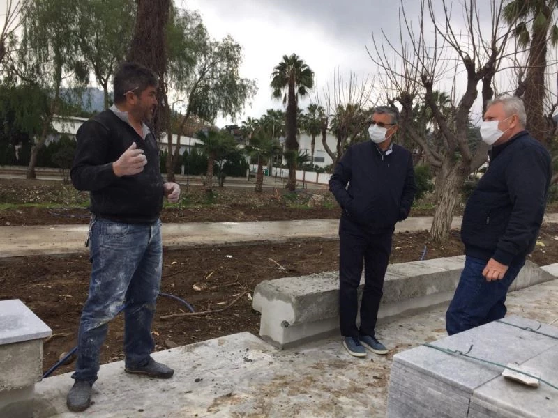 Hafta sonu sokağa çıkma kısıtlaması ile birlikte vatandaşlar evde kalırken, Kemer Belediye Başkanı Necati Topaloğlu, Başkan Yardımcısı Emin Gül ile birlikte Kemer’de gerçekleştirilen projelerde gelinen son durumu yerinde inceledi.