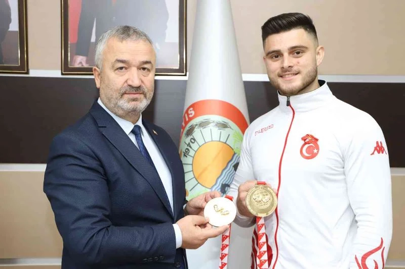 Antalya’da düzenlenen 43. Dünya Bilek Güreşi Şampiyonası’na 53 ülkeden yaklaşık binin üzerinde sporcunun katılımı ile gerçekleşti. Gerçekleşen Dünya Bilek Güreşi Şampiyonası’nda dünya şampiyonu olan Burak Deniz, 19 Mayıs Belediye Başkanı Osman Topaloğlu’nu makamında ziyaret etti.