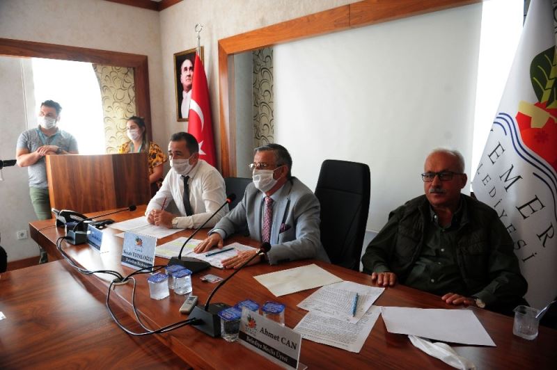 Kemer Belediyesi Olağan Meclis Toplantısı, Kemer Belediye Başkanı Necati Topaloğlu başkanlığında yapıldı. Kemer Belediyesi Şehit Ömer Halisdemir Meclis Toplantı Salonu’nda yapılan toplantı öncesi meclis üyelerini bilgilendiren Belediye Başkanı Topaloğlu, pandemi dolayısıyla mart ve nisan aylarında gönderilen genelge ile meclis toplantılarının yapılamadığını hatırlatarak, daha sonraki genelge ile korona virüse karşı alınan tedbirlerle olağan meclis toplantısını yaptıklarını söyledi. Pandemi sürecinde Kemer Kaymakamlığı ve Kemer Belediyesi olarak üzerilerine düşen görevleri yaptıklarını belirten Topaloğlu, bu süreçte belediye olarak günlük yaklaşık 4 bin 200 maske ürettiklerini kaydetti. Tasarruf yapmadan bir yere gelinemeyeceğinin altını çizen Topaloğlu, “Geçen dönemde 14 aylık süre ile bizim dönemimizdeki 14 aylık sürede sadece belediye başkanının yaptığı temsil ağırlama giderlerinden yapılan tasarruf 6 milyon 53 bin liradır. Uzun zamandır Beldibi mahallesinin imar planı yoktu. 2500’lik, 1000’lik ve 5000’lik planları askıya çıktı. Bu konuda Kültür ve Turizm Bakanı Mehmet Nuri Ersoy ve müdürleri ile sıkı bir görüşme sonucu planlar askıya çıktı. Emeği geçenlere teşekkür ediyoruz. İnşallah itirazlar bittikten sonra 18 uygulamasına geçilir ve Beldibi hak ettiği hizmeti almaya başlar” diye konuştu.