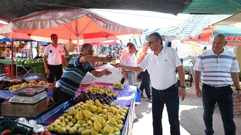 Topaloğlu, pazar esnafını da tek tek ziyaret ederek, hayırlı işler temennisinde bulundu.