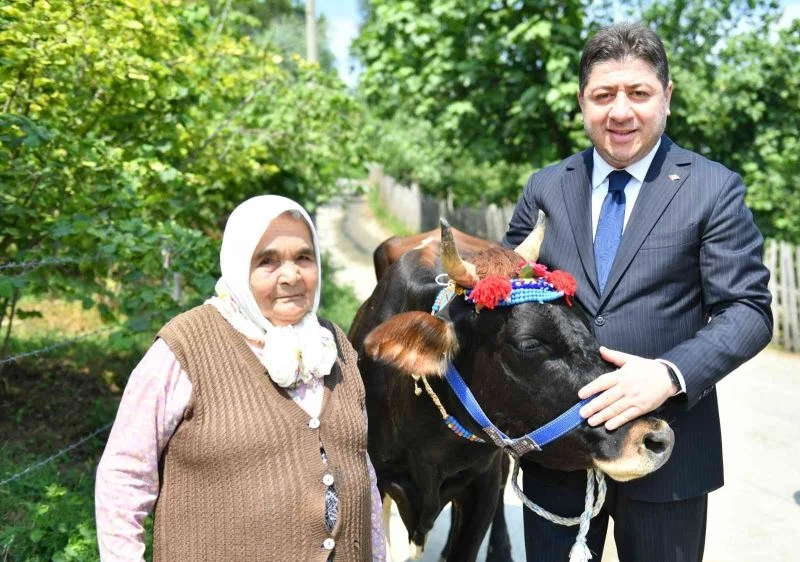 Bir haftalık aranın ardından tekrar Fatma Güleç’i ziyaret eden Başkan Aşkın Tören, bu defa tam da Fatma ninenin kendisine duygu dolu sözlerle tarif ettiği gibi “ala bir süt ineği” getirerek büyük bir mutluluk yaşattı. Başkan Tören’in kendisine teslim ettiği süt ineğini alan Fatma Güleç “Hiçbir şeyim yok. İneğimin sütünü çökeleğini, yoğurdunu, tereyağını satıyordum haftada 500 lira para alıyordum. Tek tutar dalımız olan ineğim ölünce yıkıldık tabi. Bugün yeni bir ineğim oldu. Çok teşekkür ediyorum Allah razı olsun Aşkın başkandan. Allah ona dert bela göstermesin” sözleriyle Başkan Tören’e teşekkür etti.