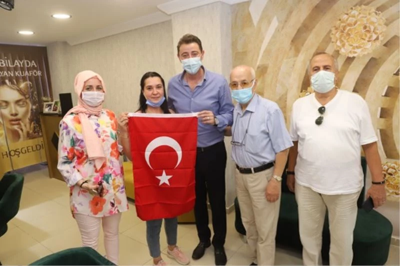Başkan Tosun esnafı ziyaret edip bayrak hediye etti