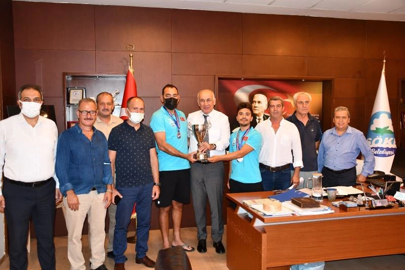 Türkiye Su Altı Sporları Federasyonu (TSSF) Yönetim Kurulu Üyesi Ahmet Cumhur Sakız, Federasyon İl Temsilcisi Mehmet Üzüm, Altı Eylül Spor Kulübü Yöneticisi İsmail Aydıner, Söke Gençlikspor Yöneticisi Hüsmen Toptay, yarışmada belediyespor takımının yöneticiliğini yapan Necati Maldar, takım kaptanı Hüseyin Daşdibi ve sporcuların gerçekleştirdikleri ziyarette, Belediye Başkanı Levent Tuncel, şampiyon ekibi başarılarından dolayı tebrik etti. Farklı illerden, 25 kulüpten, 100 sporcunun mücadele ettiği yarışmada elde ettikleri başarı ile Türkiye ikincisi olarak kürsüde yer alan Söke Belediyespor Takımının elde ettiği başarıyı çok önemsediklerini söyleyen Levent Tuncel, ayrıca bireysel olarak da ikincilik elde ederek milli takıma seçilen kaptan Hüseyin Daşdibi’ye başarı temennisinde bulundu. Hüseyin Daşdibi’nin son yıllardaki performansının, elde ettiği başarının tesadüf olmadığını söyleyen Tuncel, “Başta kaptanımız olmak üzere takımımızdan bir başarı bekliyordum” dedi.