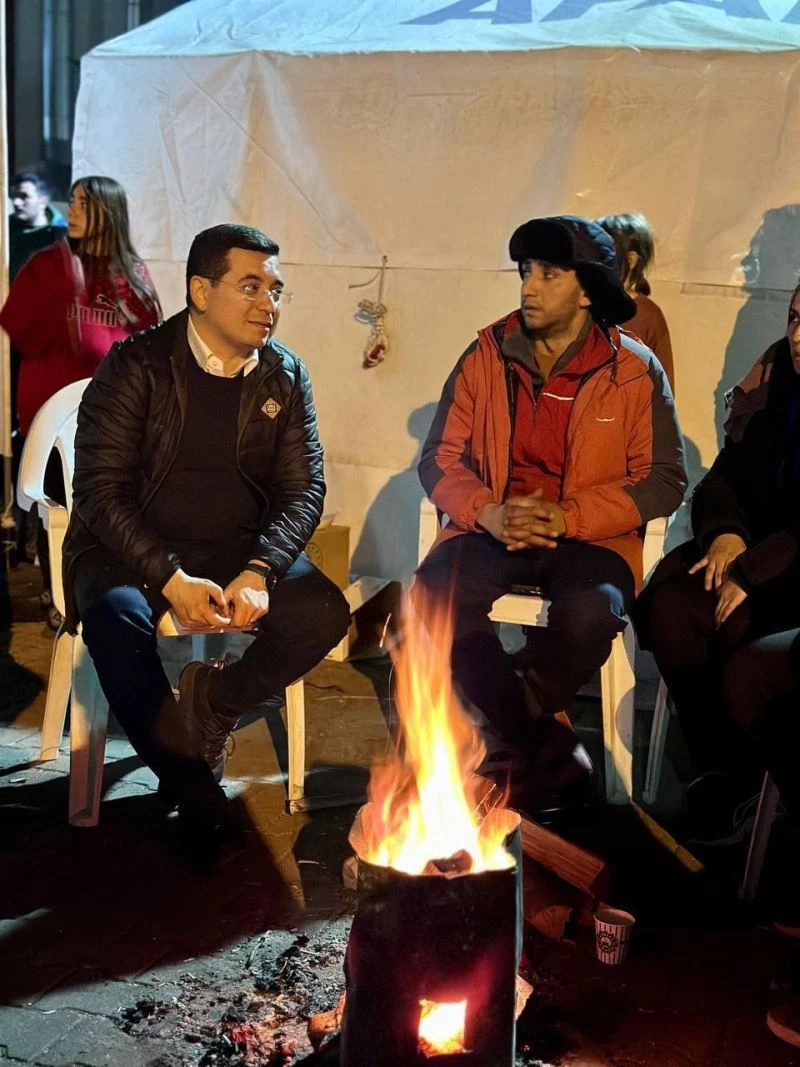 İskenderun’daki deprem bölgesindeki çalışmaların değerlendirildiği Belediye Başkanları Toplantısına katılan Başkan Tütüncü, ardından Osmaniye’deki depremzedeleri ziyaret etti. Çadır kentleri gezen Başkan Tütüncü, depremzedelerle oturdu, sohbet etti, acılarını paylaştı. Başkan Tütüncü, çadır kenti gezerken bir depremzede, “Depremin olduğu ilk günden beri ben burada sizin araçlarınızı gördüm. Memnun oldum, hoşuma gitti. Altındağ bir, Balıkesir iki, sizin araç üç Bütün personelinizle burada büyük, küçük herkesle ilgilenildi. İmkanlarımız doğrultusunda her zaman girmesek de, arada bir girip yemeğimizi yiyoruz” dedi.