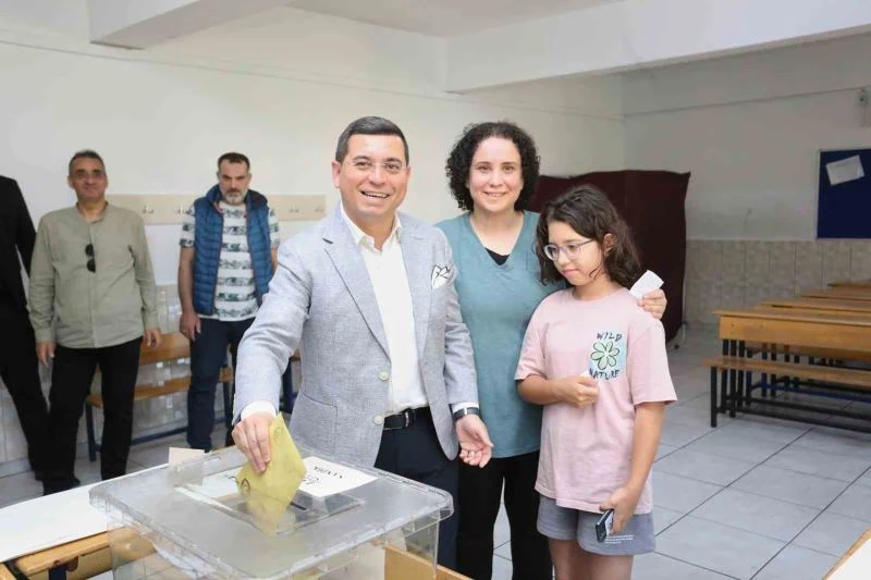 Başkan Tütüncü, oy kullanmaya eşi Dr. Ayşe Tütüncü ve kızı Zeynep ile birlikte geldi.